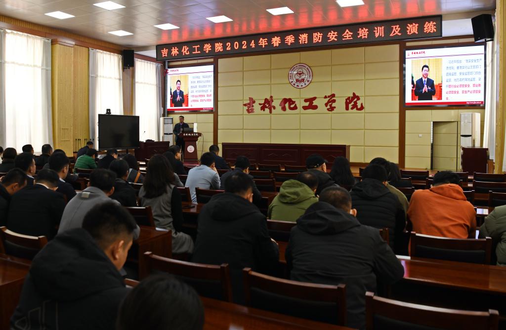 3月27日下午,学校龙潭校区、双吉校区同时开展了消防培训演练。消防培训演练分两个阶段。第一阶段为安全知识讲座。学校安全工程专业教师、吉林市应急管理专家王泽恒副教授,经开区消防救援大队参谋连欢为龙潭校区、双吉校区教师分别展示了近年来发生的各类触目惊心的火灾案例,并从消防安全基础知识、消防安全四个能力等方面,结合学校实际情况,生动详细地为全体师生讲解了如何预防火灾、如何正确选择灭火方式及使用灭火工具、如何组织人员进行疏散等火灾救生技能。第二阶段为消防演练现场,学校安全保卫部(处)防火科科长、经开区消防救援大队参谋现场讲解了灭火器分类、操作方法、注意事项和消防水带的使用方法,并进行了现场示范,参加演练人员按照操作要领进行了灭火练习。