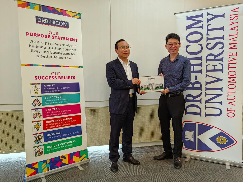 马来西亚彭亨大学校长Yuserrie Bin Zainuddin教授热情接待了宋春辉书记一行,双方召开了教育交流合作洽谈会。会上,双方学校领导各自介绍了学校的办学情况和办学特色,围绕开展交流合作、师生互派互访、教师海外访学基地、车辆工程专业合作办学等项目进行了深入洽谈讨论。