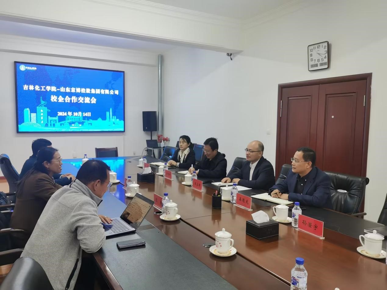 王立国对牛瑞兴一行的到来表示欢迎,并介绍近年来吉林化工学院与京博集团开展校企协同育人情况。牛瑞兴介绍了京博校企N1N融创基地未来发展方向及进一步深化校企合作的举措。